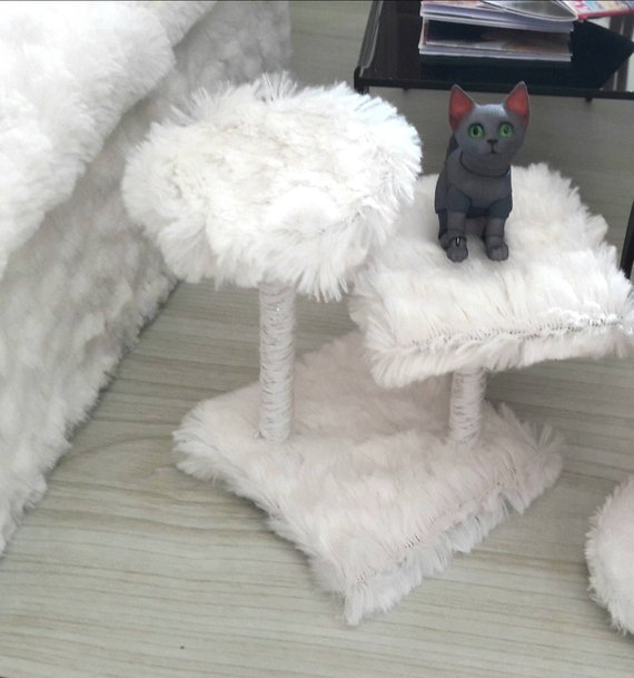 This miniature cat tree 1/4 has been designed to enhance your dioramas and everyday scenes with a warm, realistic touch.