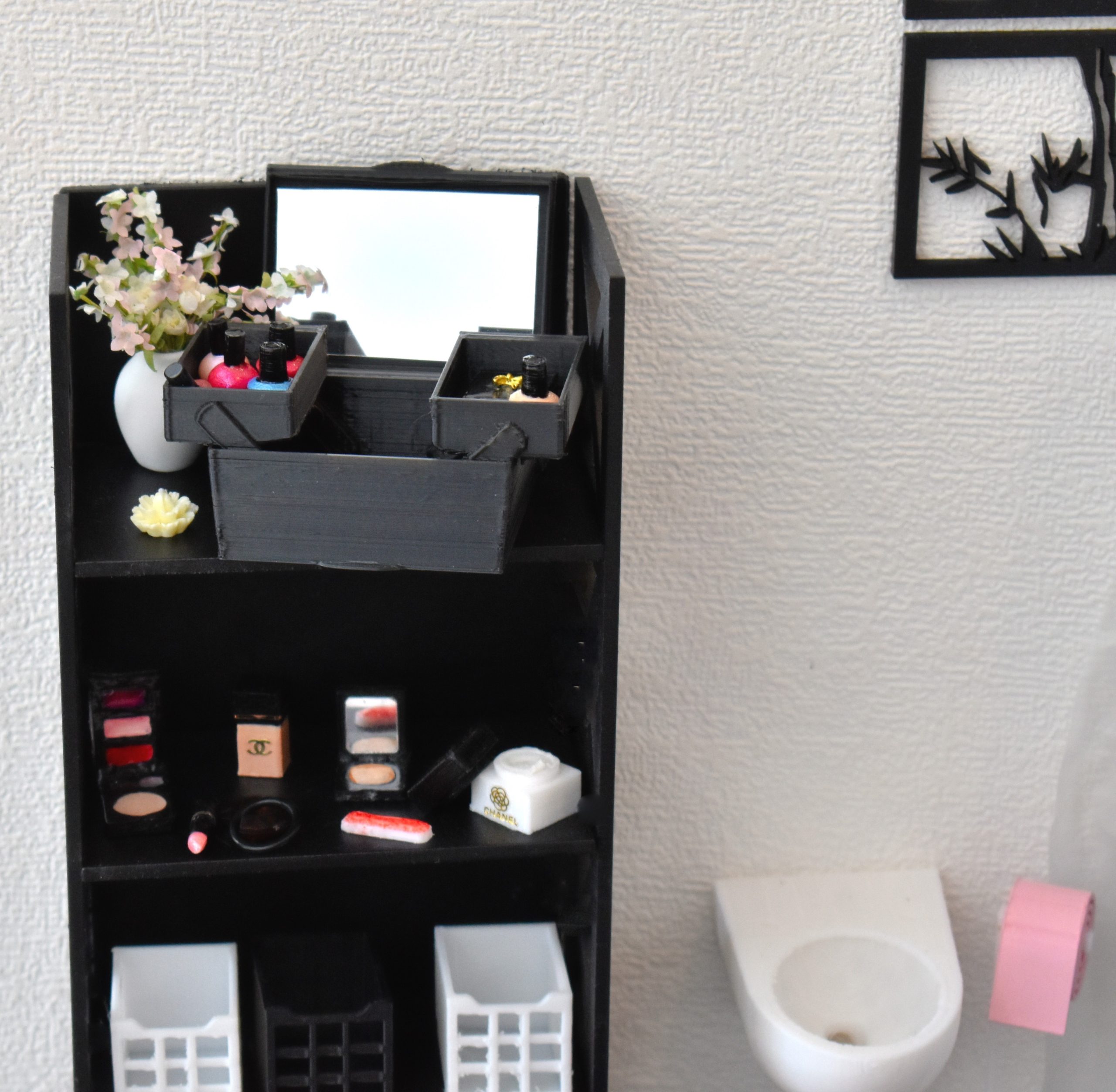 Both decorative and functional, it can be used to store your mini make-up palettes and hairstyling accessories, while adding a realistic, elegant touch to your dioramas.