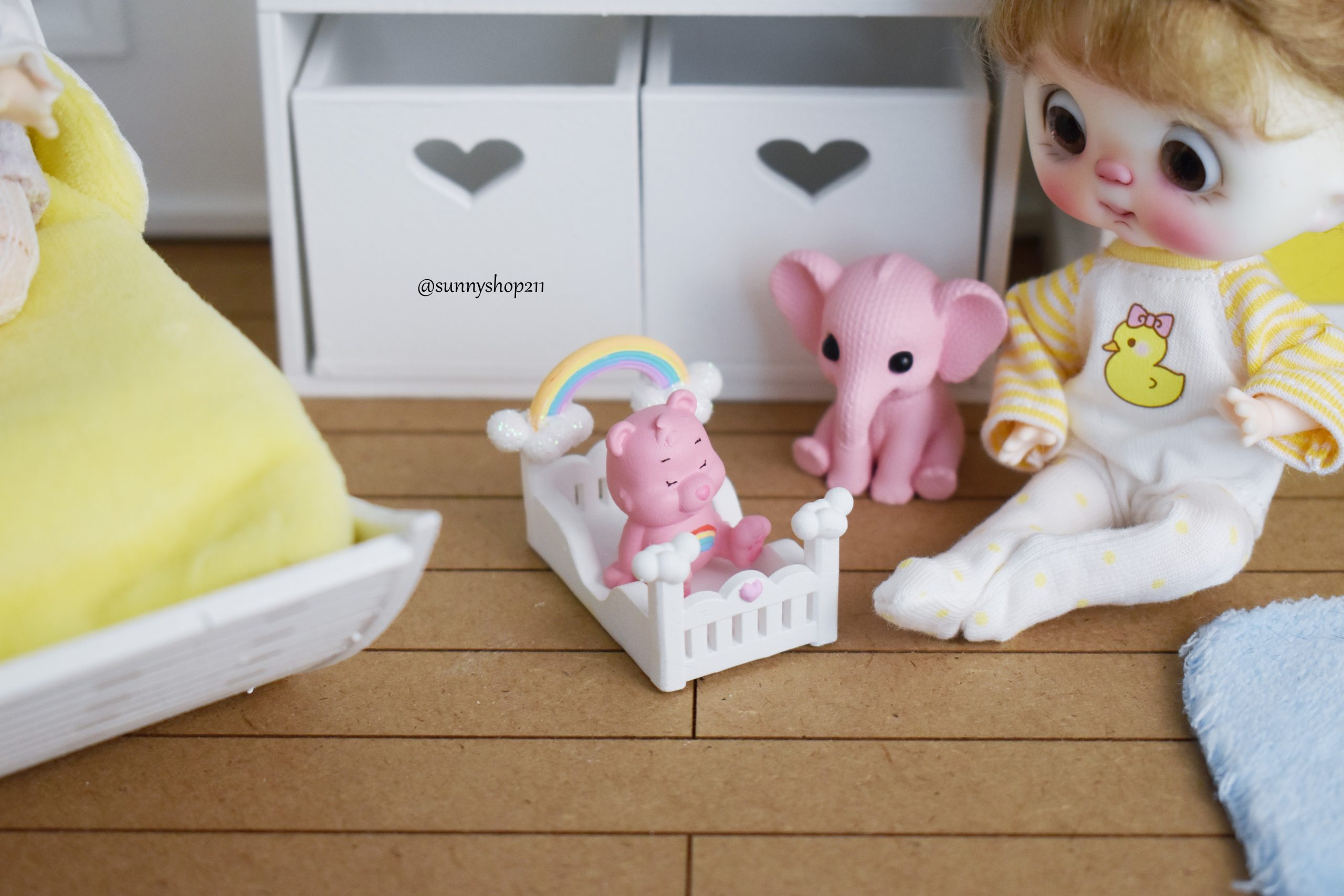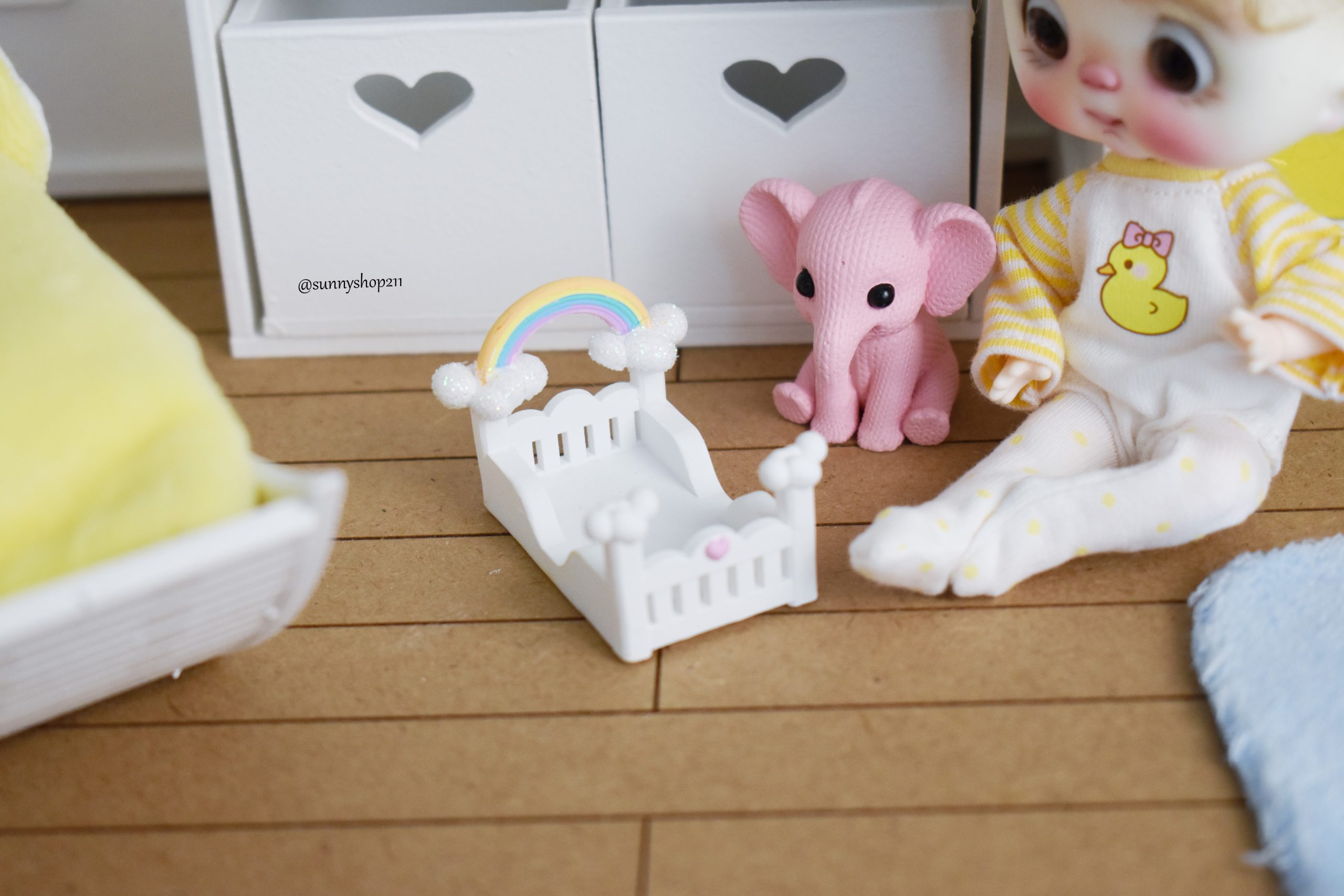 Lit bébé miniature nuage & arc-en-ciel – Accessoire nursery BJD Cloud & rainbow miniature cot - BJD nursery accessory
