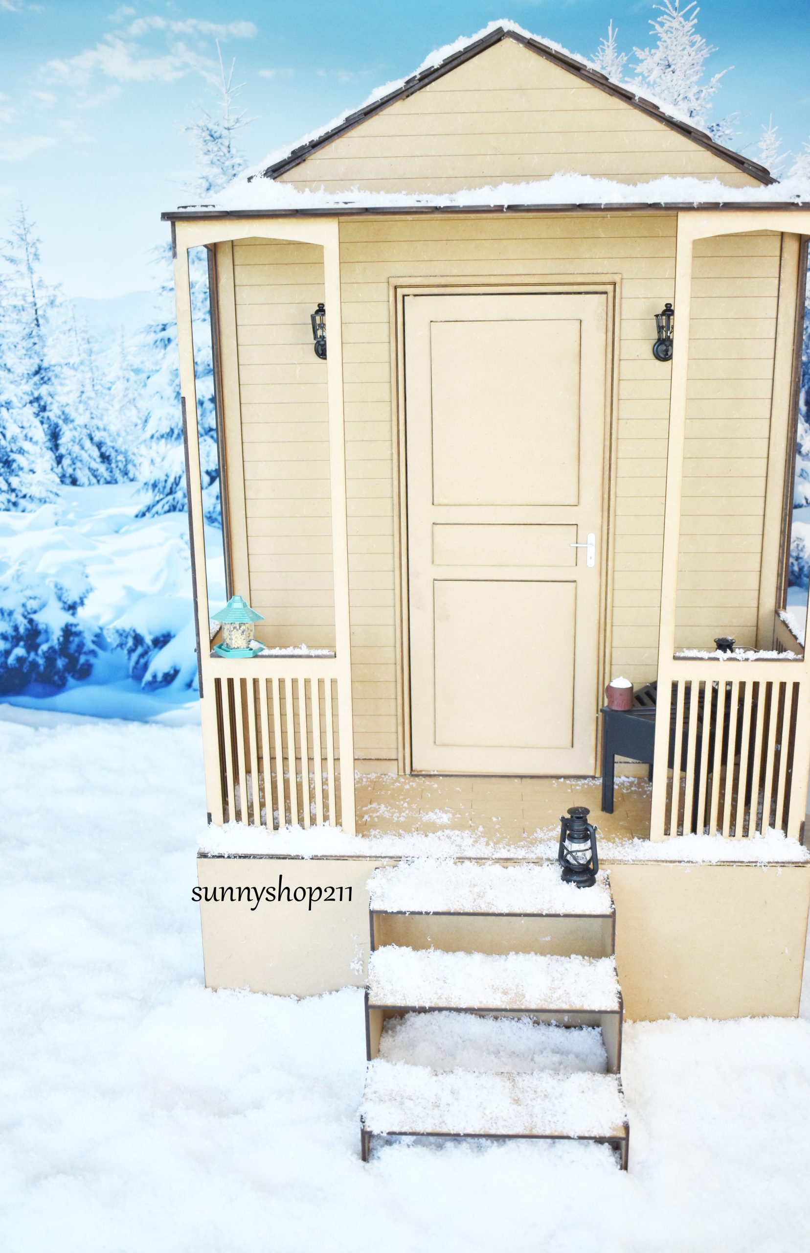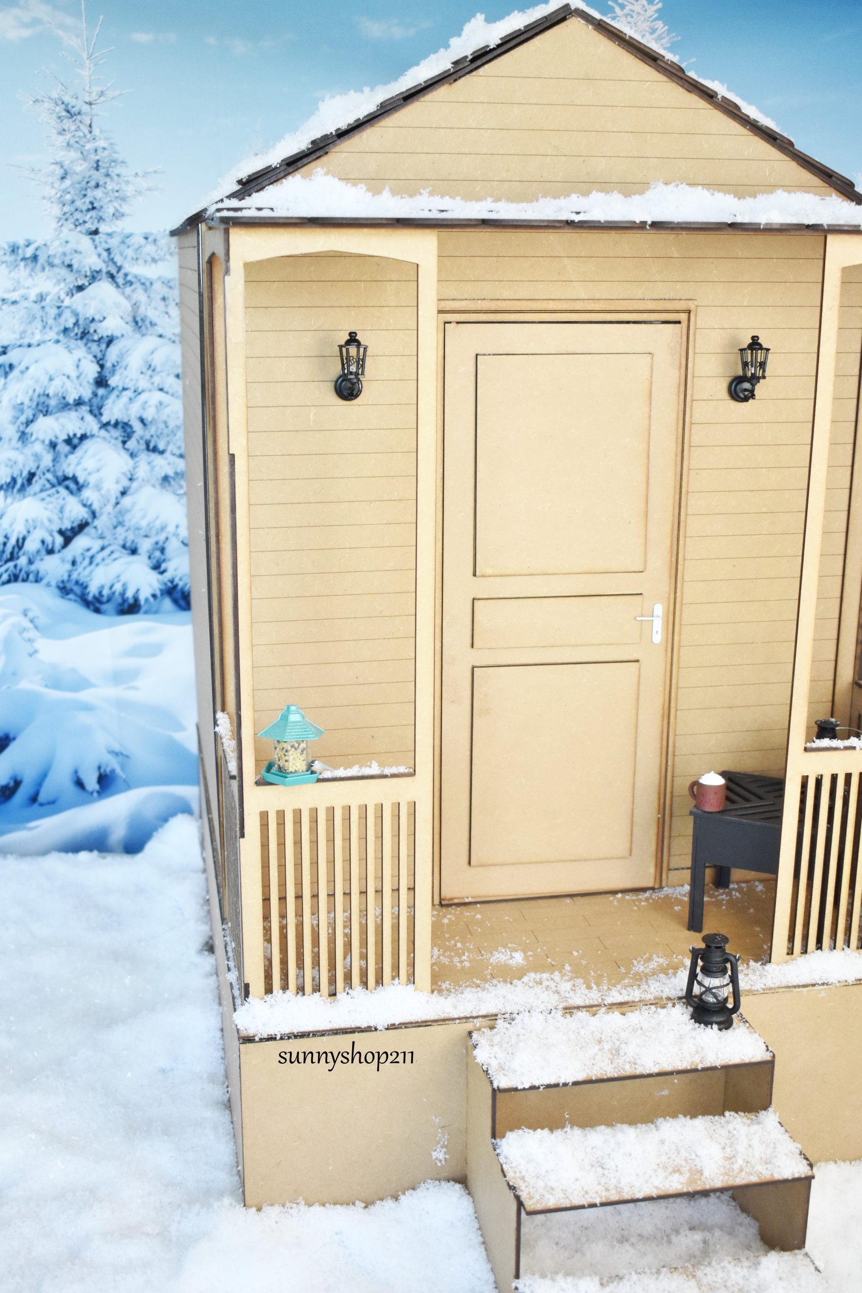 This miniature chalet 1/4 is sold in a DIY paint-and-assemble KIT.