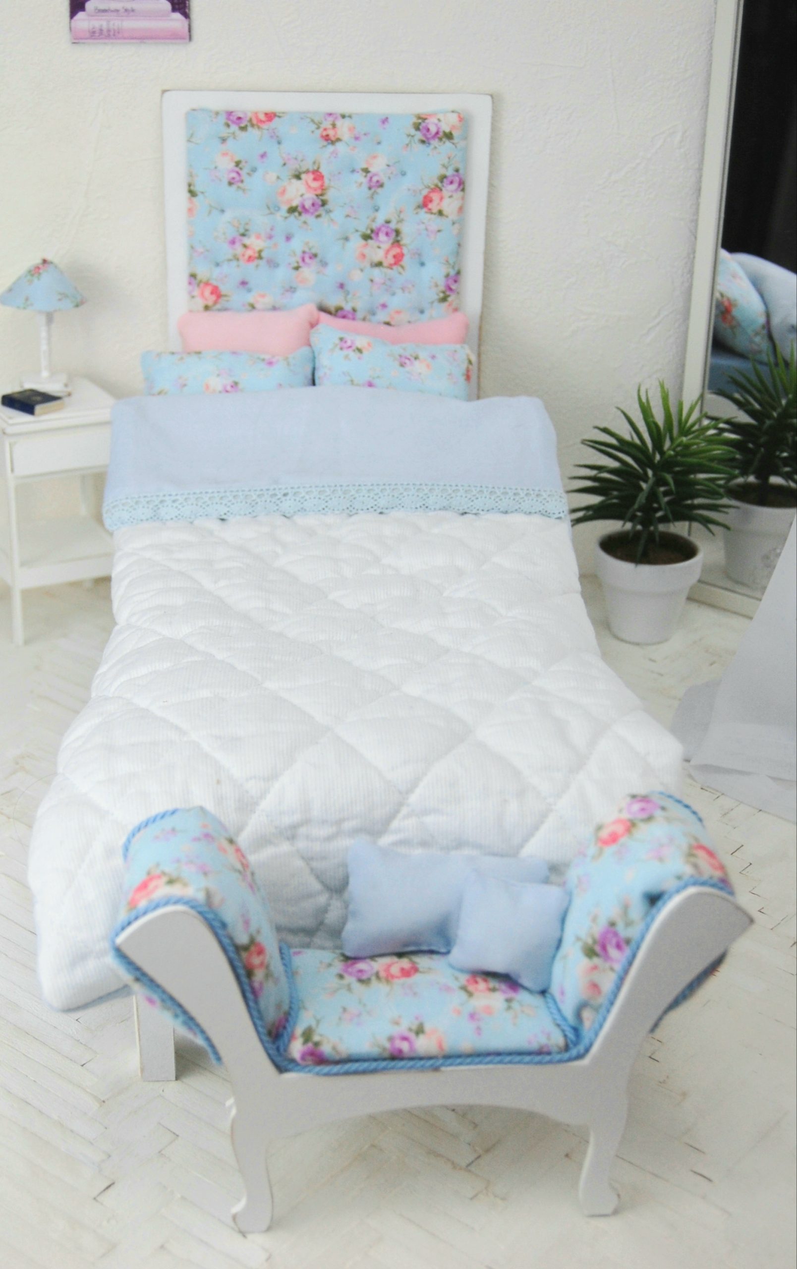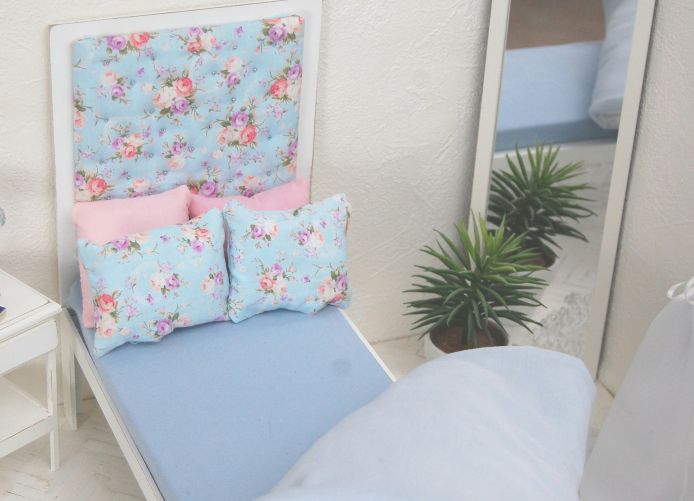This miniature shabby bedroom 1/6, painted in a spirit shabby chic, is ideal for creating a romantic, soft and elegant atmosphere in your dioramas.