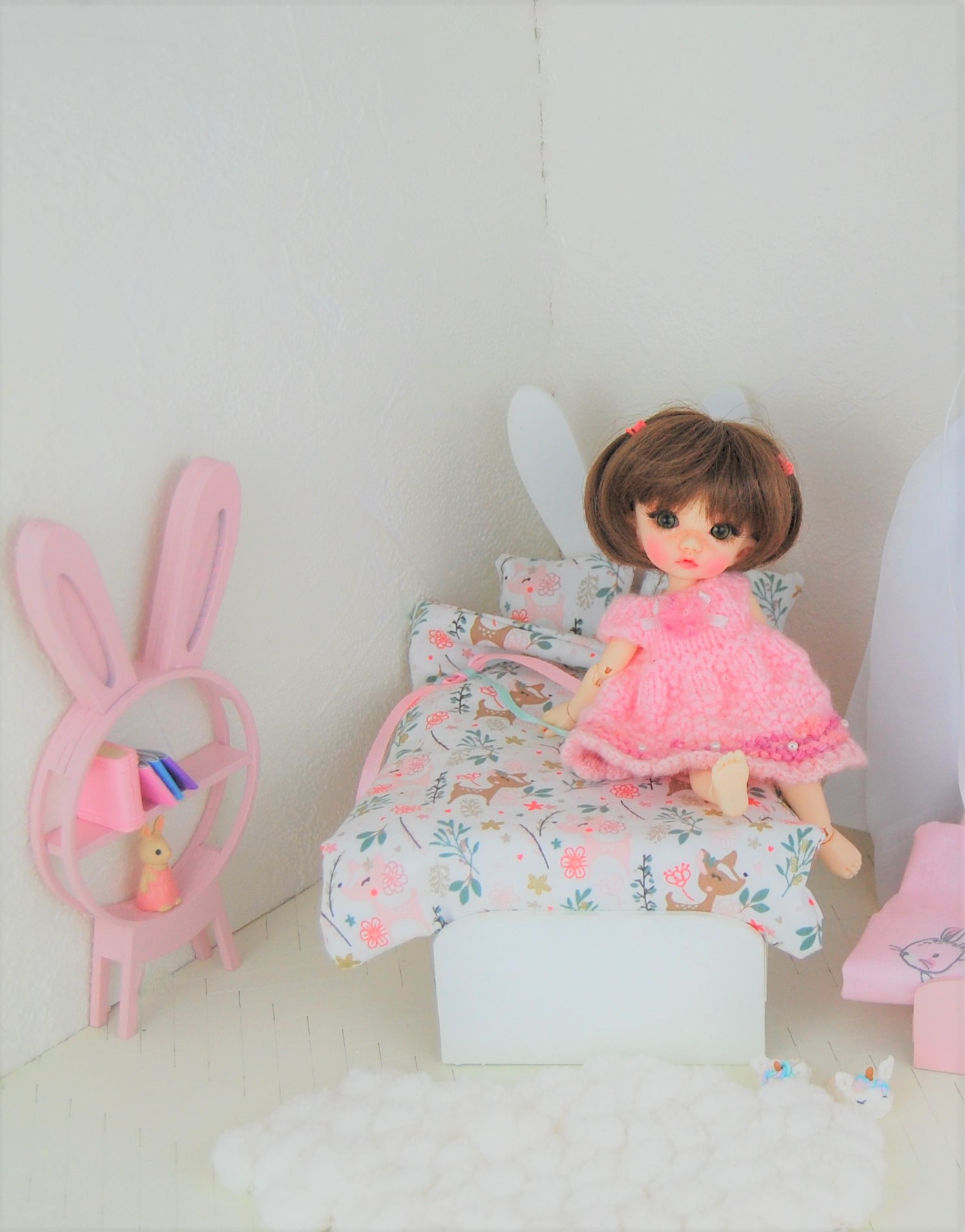 Miniature rabbit bed diorama 1/8 for lati yellow, pukifee