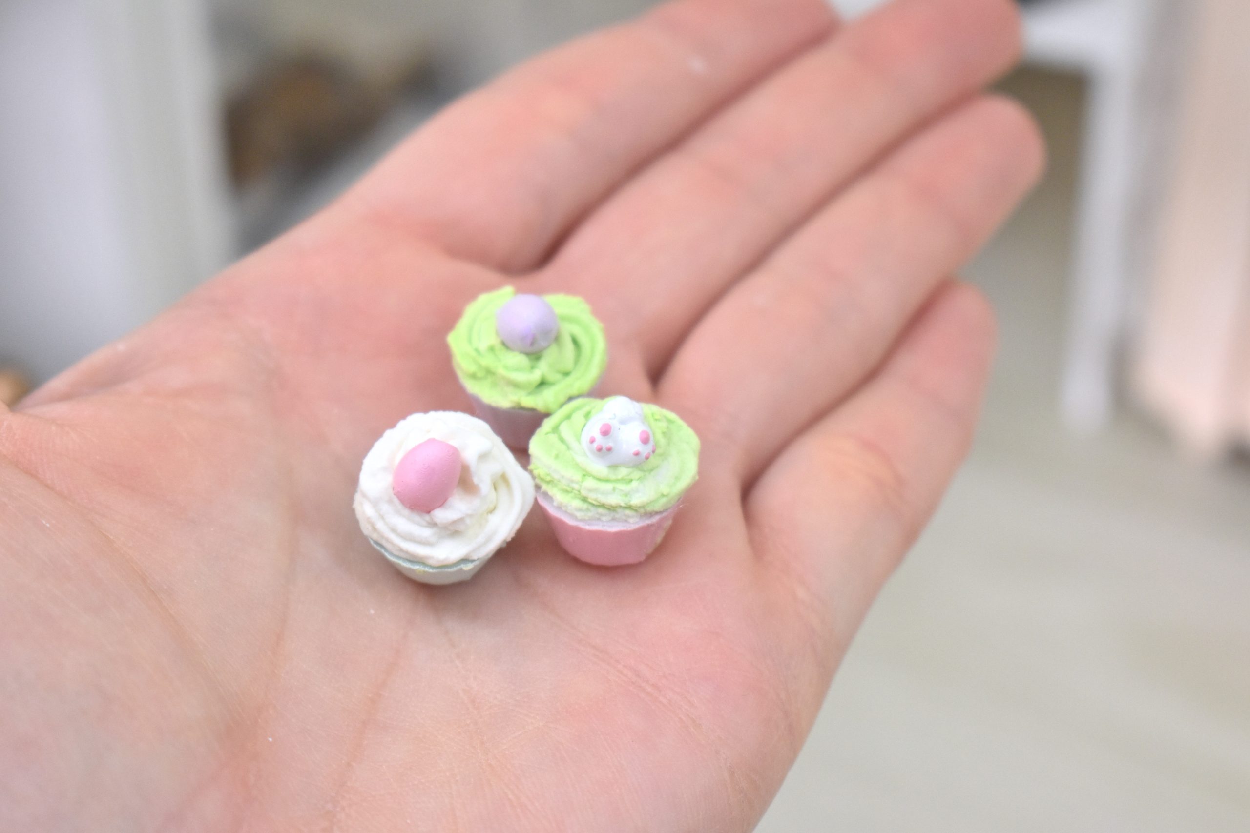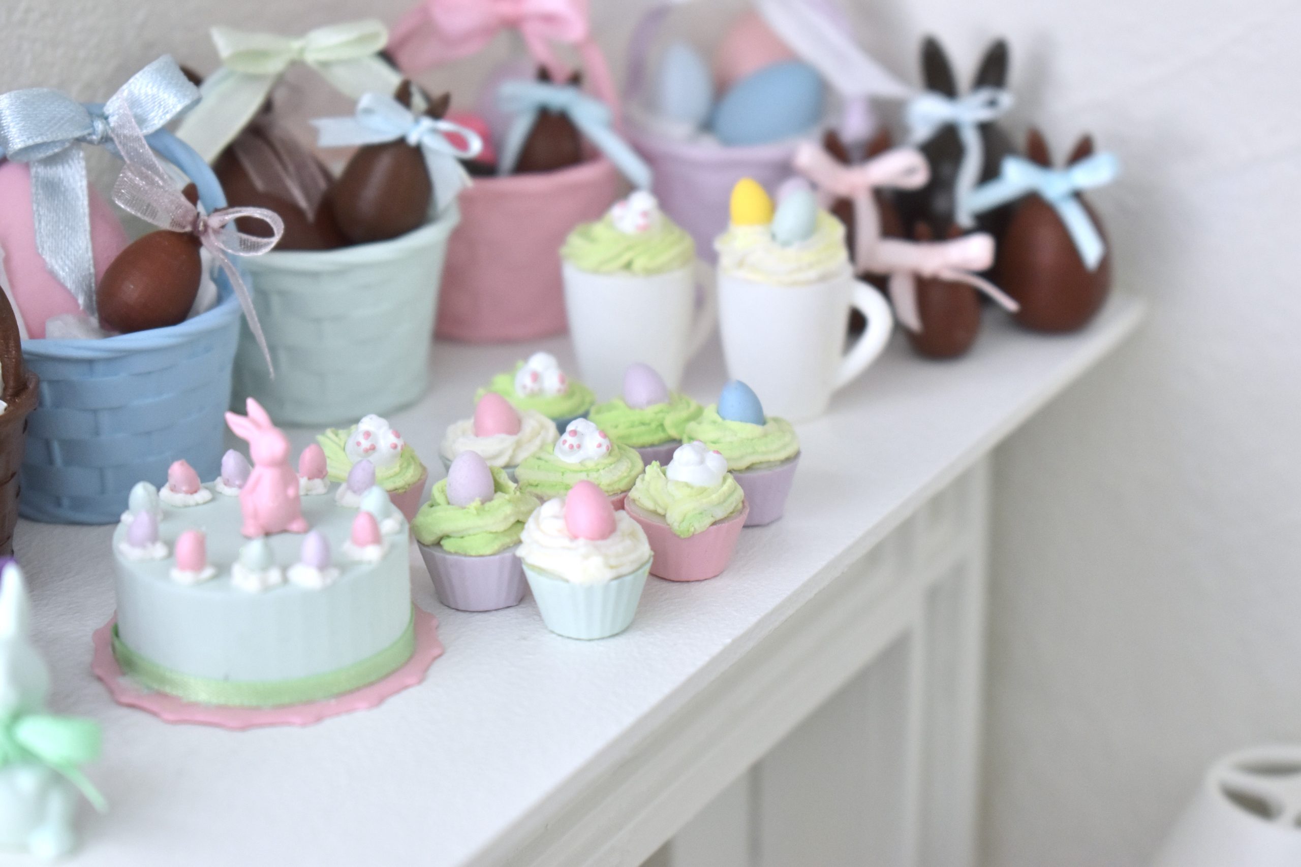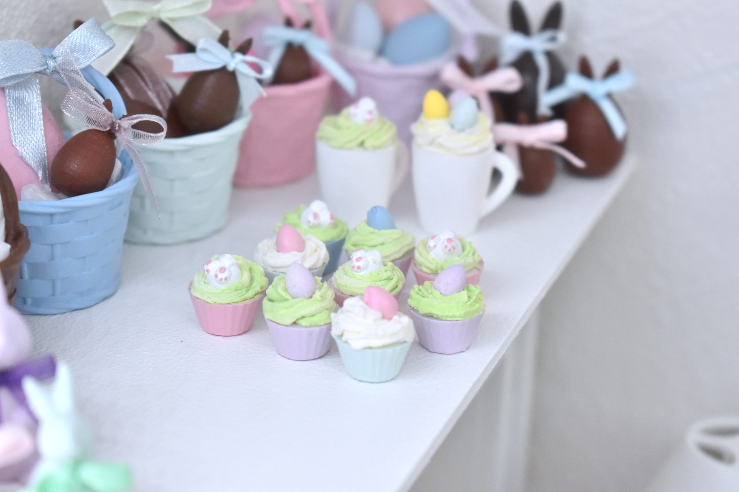 These decorative cupcakes are perfect for creating festive scenes around a tea party or miniature Easter table.