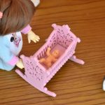 Miniature baby bed, 10/15 cm doll toy such as pukifee lati yellow, tommy , shelly, Kelly or similar.