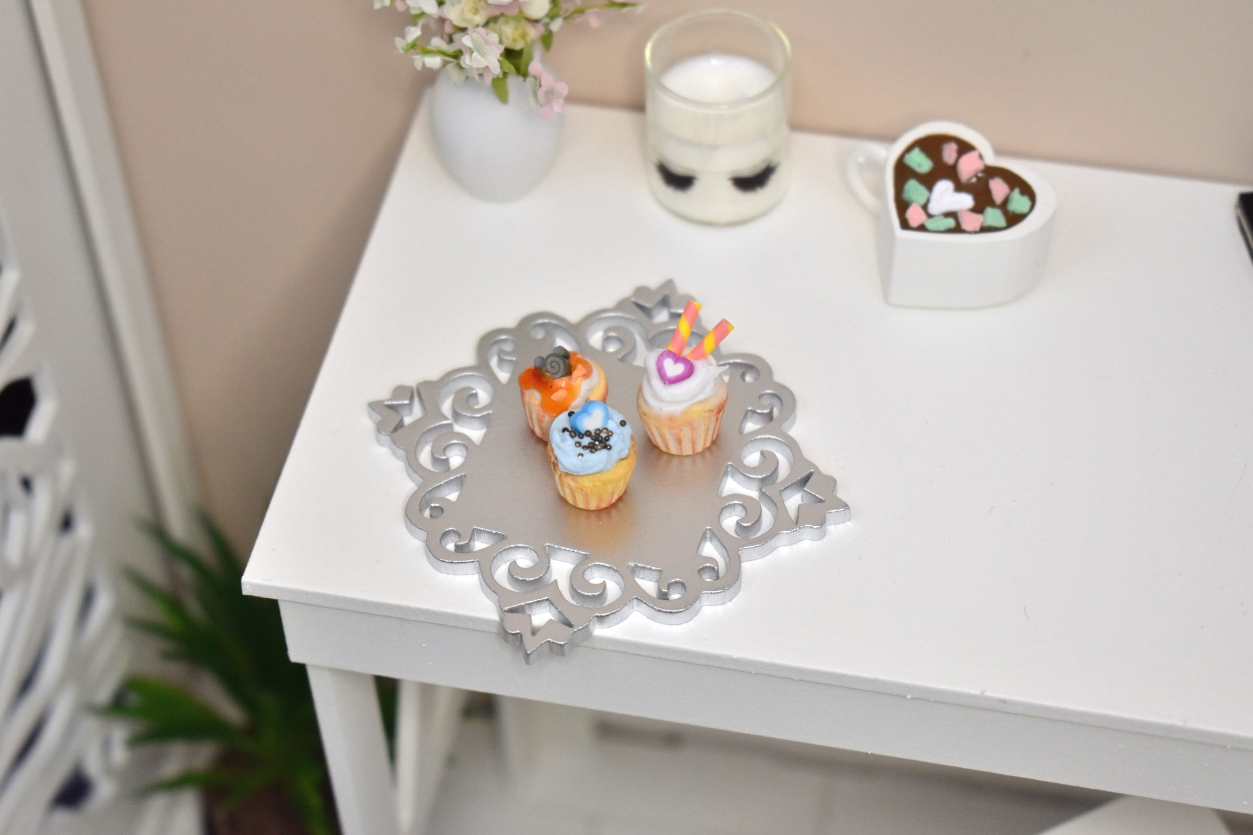 This miniature cake dish is ideal for showcasing your gourmet creations and completing your dioramas, party scenes, tea rooms or miniature kitchens.