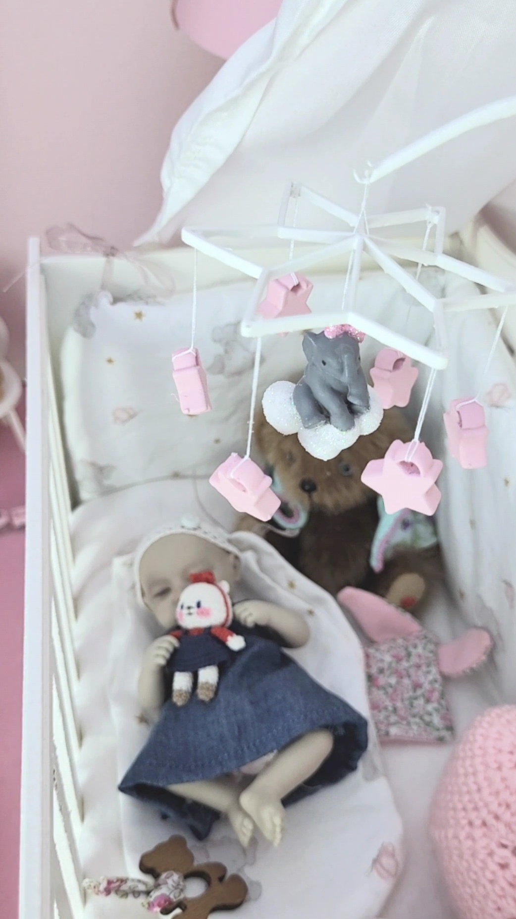 đ Mobile Ă©lĂ©phant miniature â Accessoire nursery bĂ©bĂ© BJD