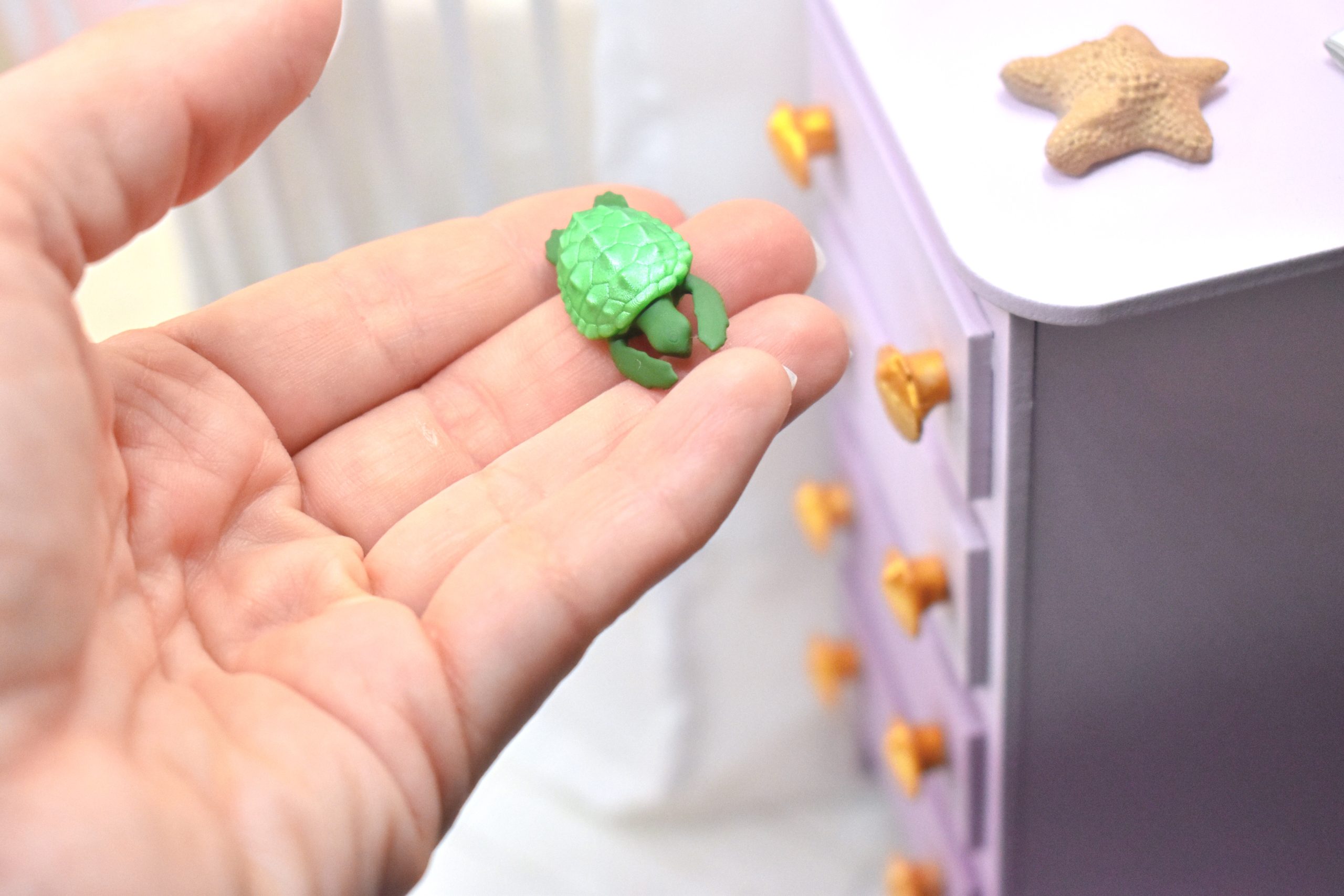 Cette tortue de mer miniature décorative est un petit accessoire délicat et réaliste, idéal pour enrichir vos dioramas marins, chambres de sirènes ou univers aquatiques pour dolls.