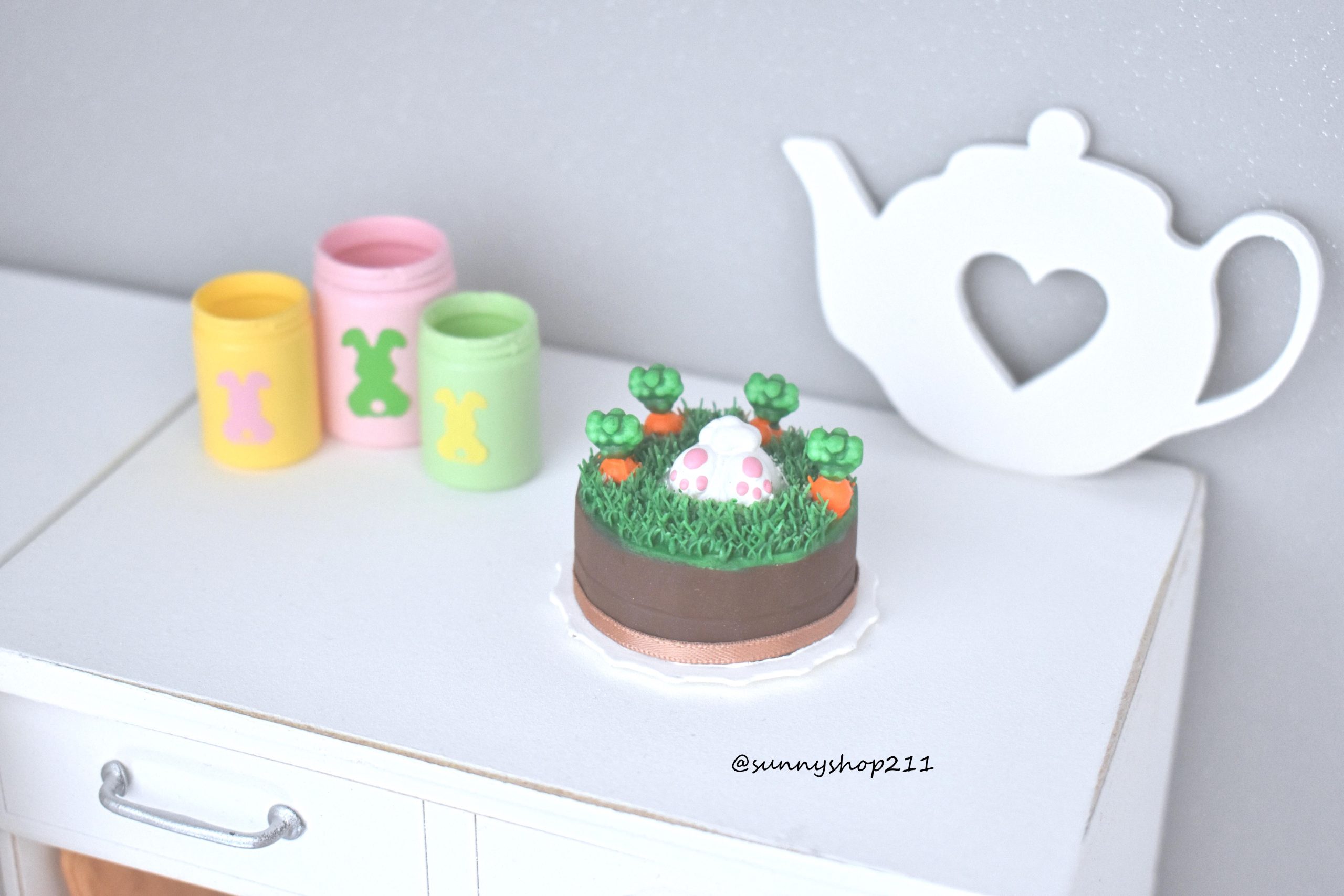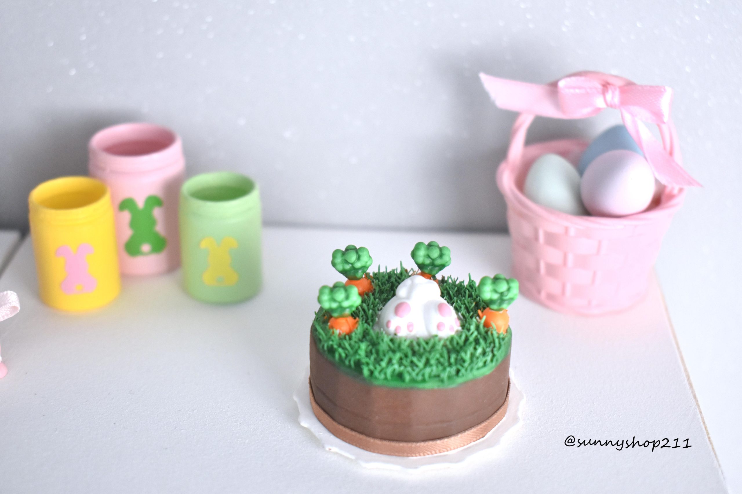 Ce gâteau de Pâques lapin miniature 1/4 est idéal pour célébrer Pâques avec vos dolls et apporter une touche gourmande, ludique et printanière à vos mises en scène.