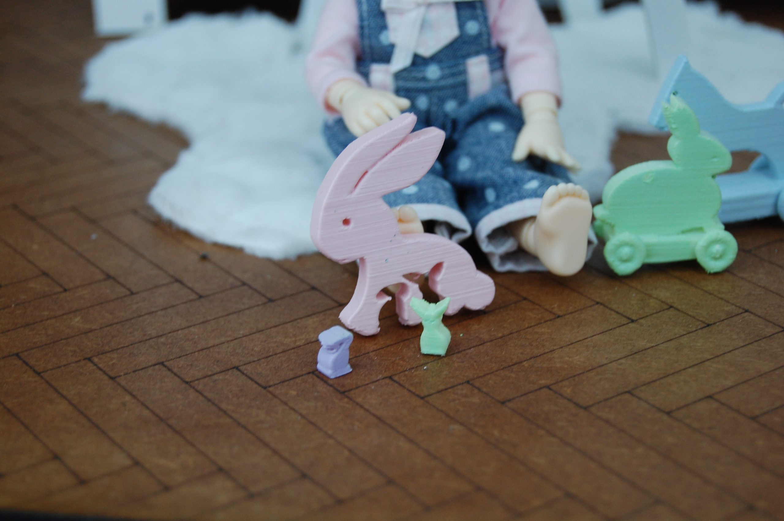 ✨ Un lapin à emboîter miniature plein de douceur pour enrichir les scènes d’éveil bébé au 1/8.