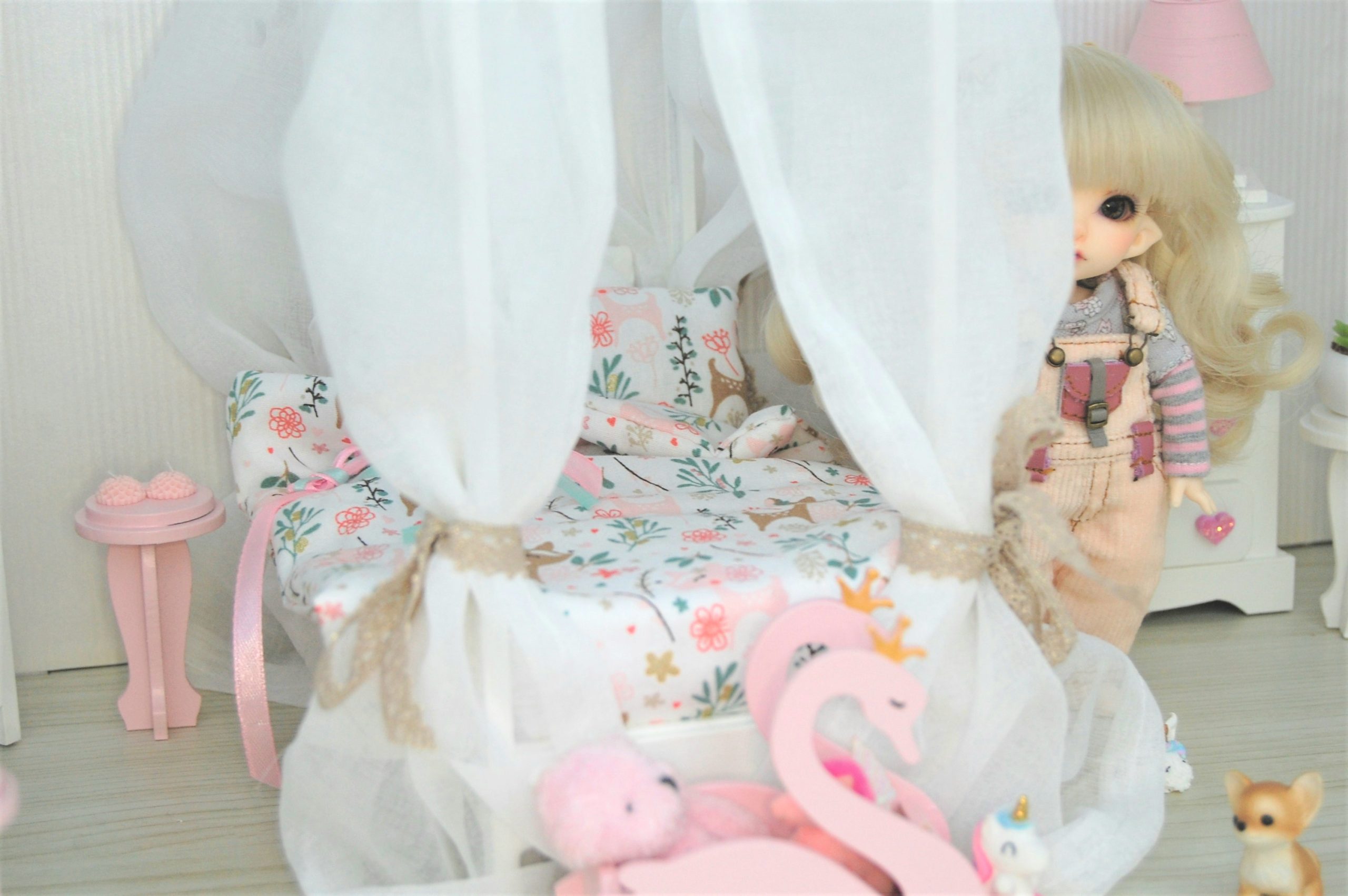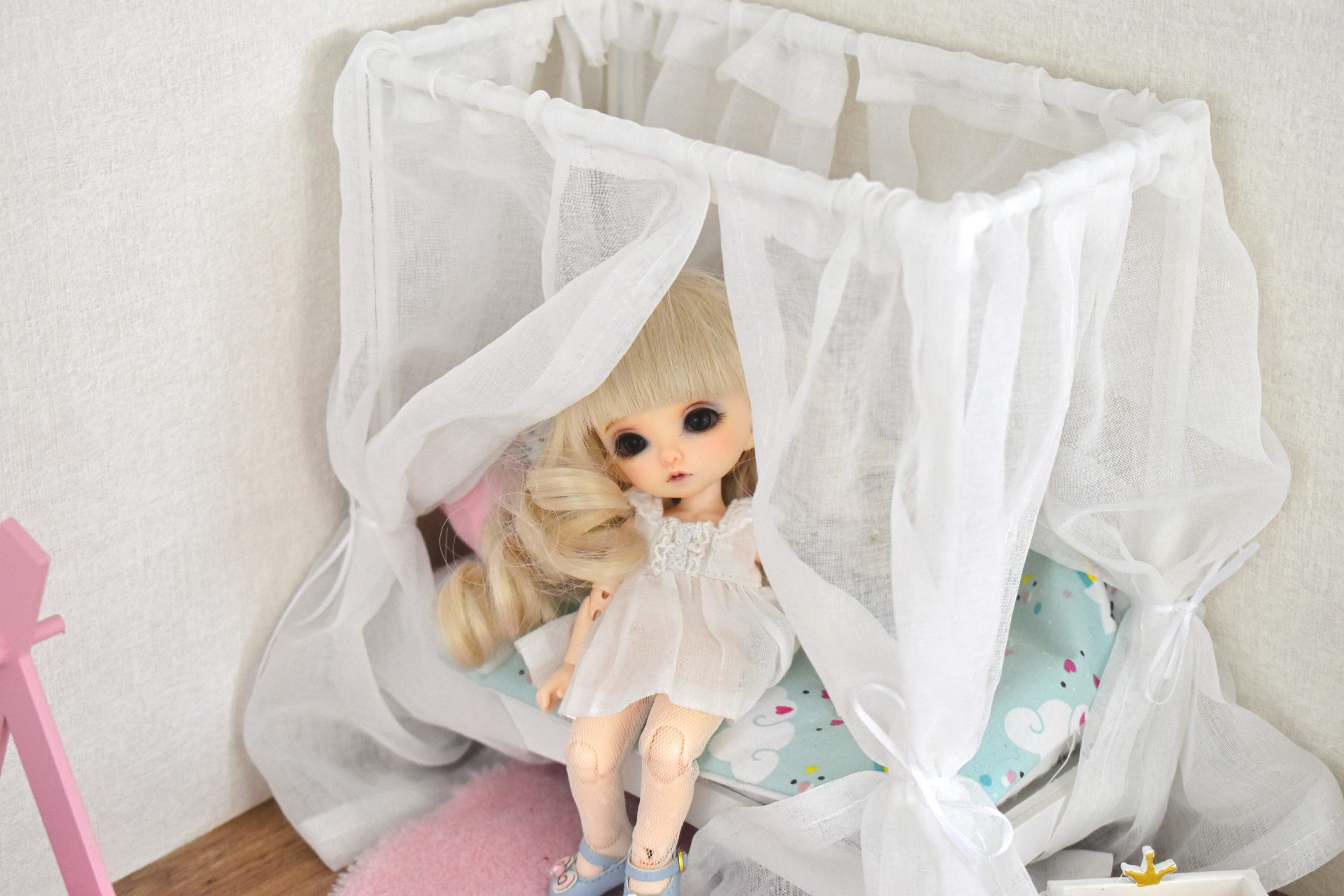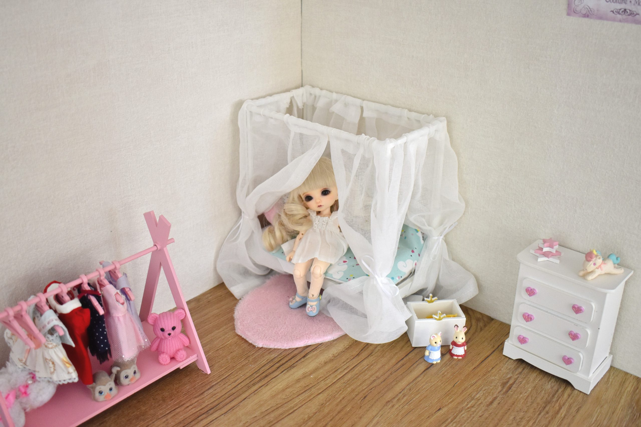 Ce lit à baldaquin miniature 1/8 est idéal pour créer une chambre romantique et féerique pour vos dolls.