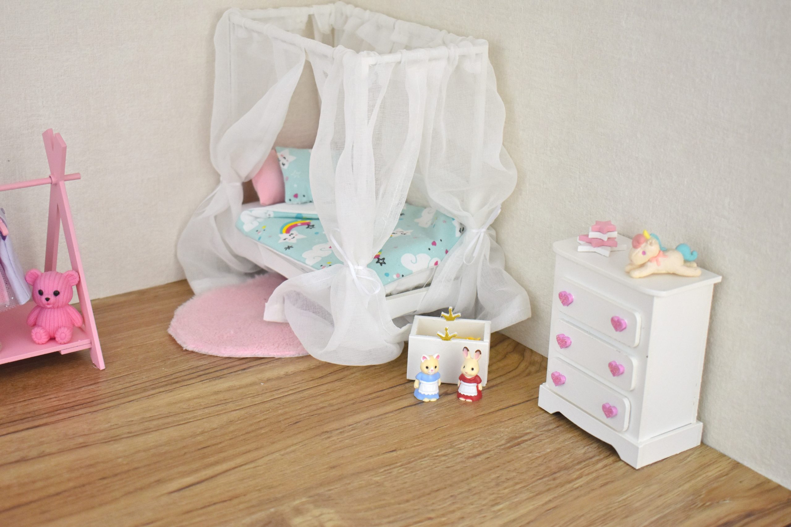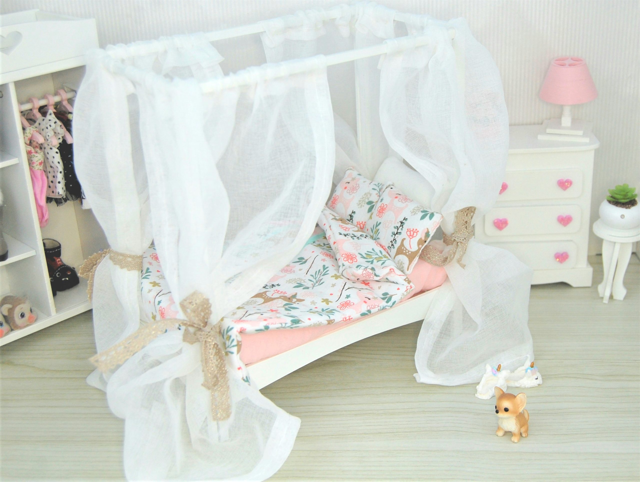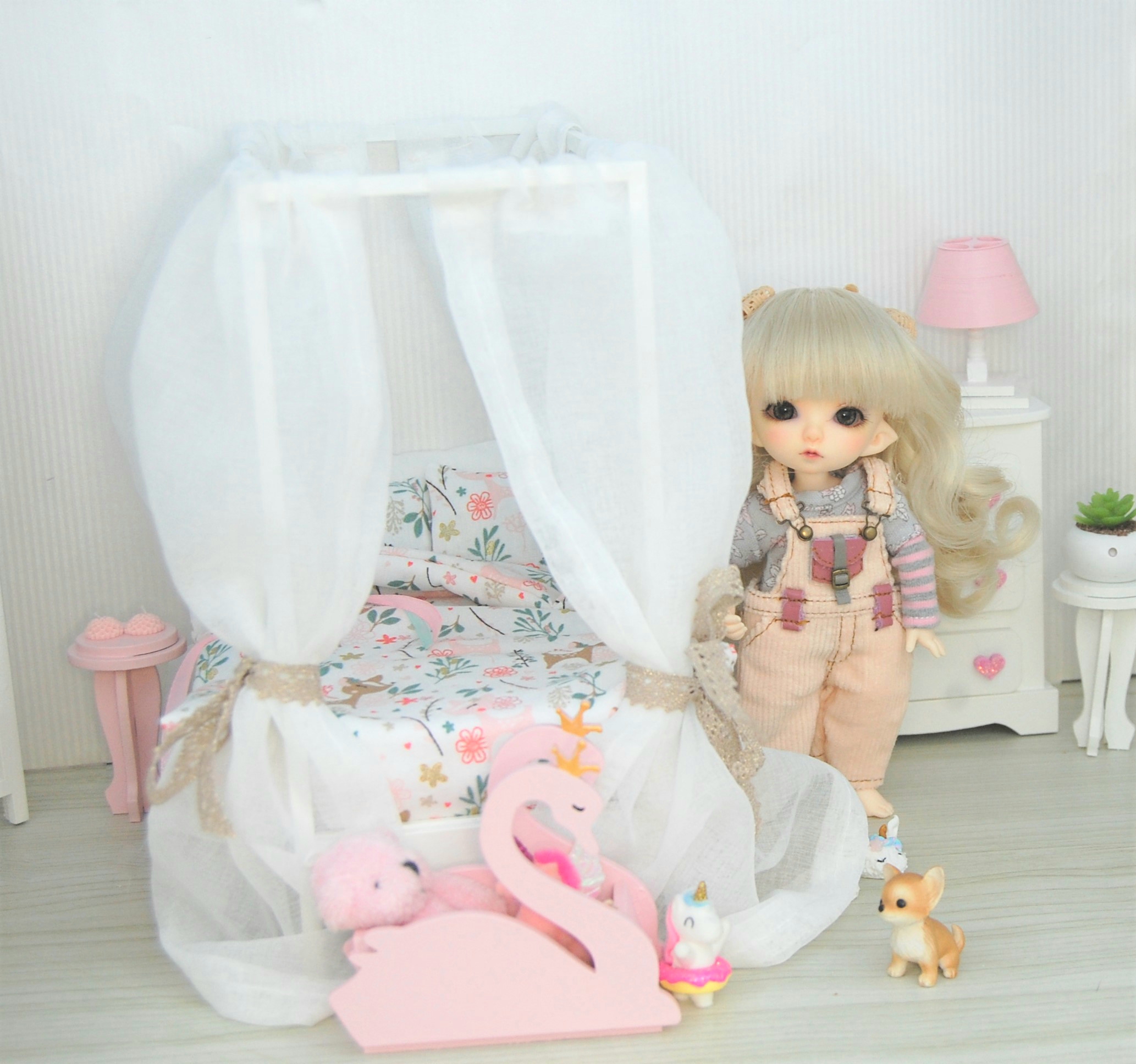 Ce lit à baldaquin miniature 1/8 est idéal pour créer une chambre romantique et féerique pour vos dolls.
