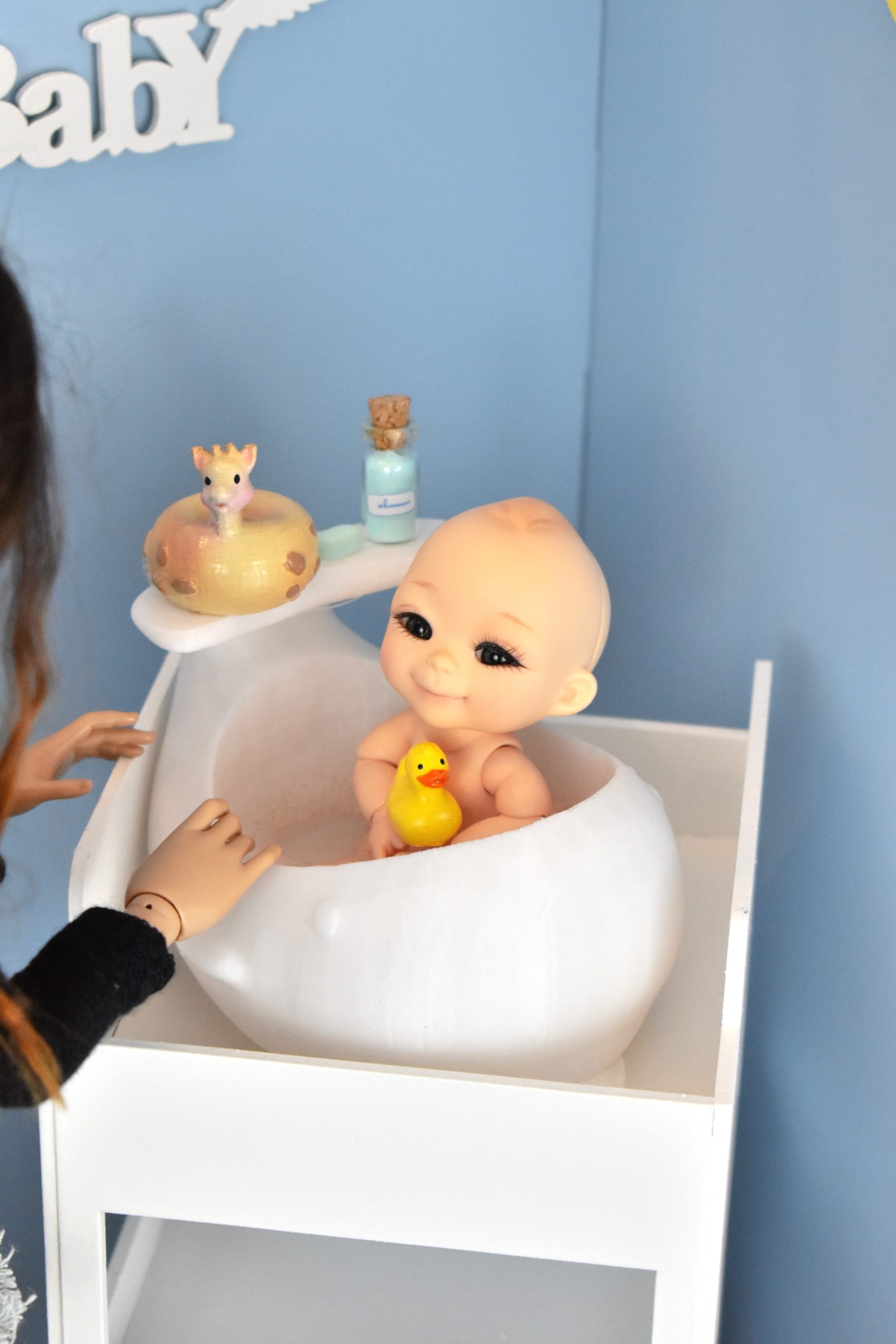 la baignoire et les accessoires de bain sont en vente dans ma boutique : Baignoire miniature bjd baby pukifee, Nappy choo, reborn ou Baignoire baleine bjd baby pukifee, Nappy choo, reborn