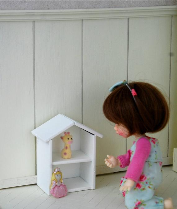 Mini maison pour ranger les livres ou jouets. La maison mesure 7 cm de haut.