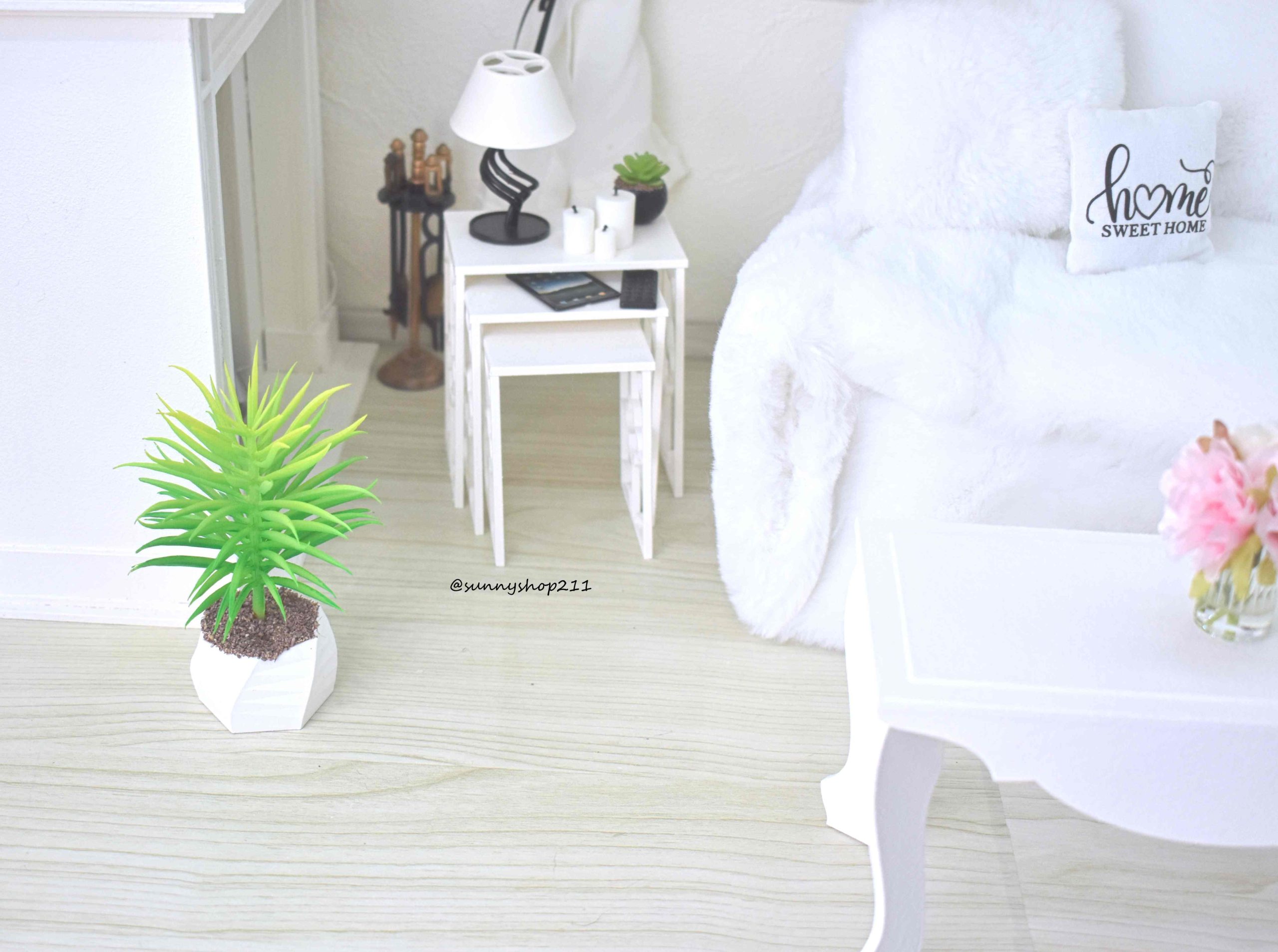 Cet ensemble de tables gigognes miniatures 1/4 est idéal pour créer des mises en scène modernes et modulables dans vos dioramas.