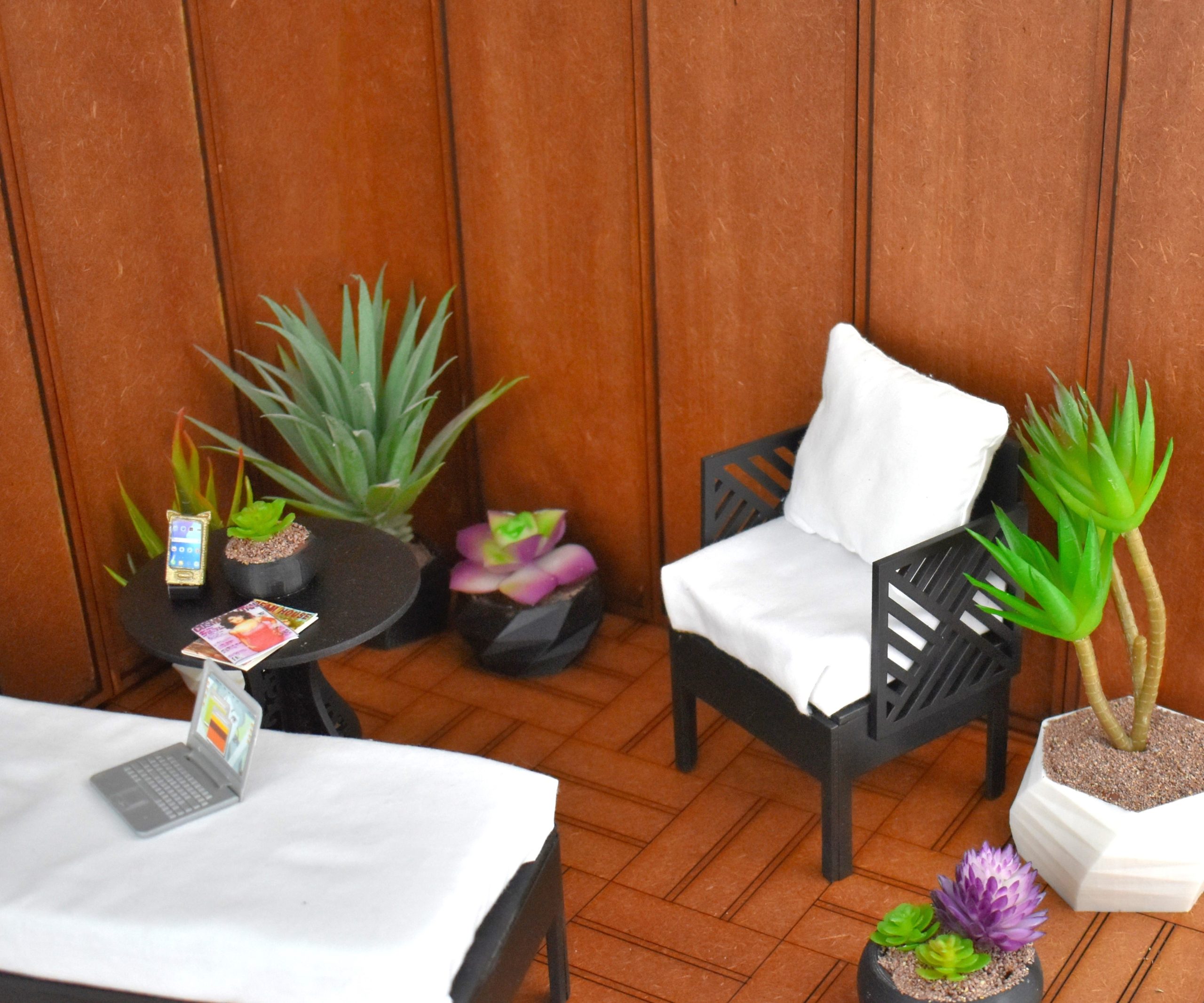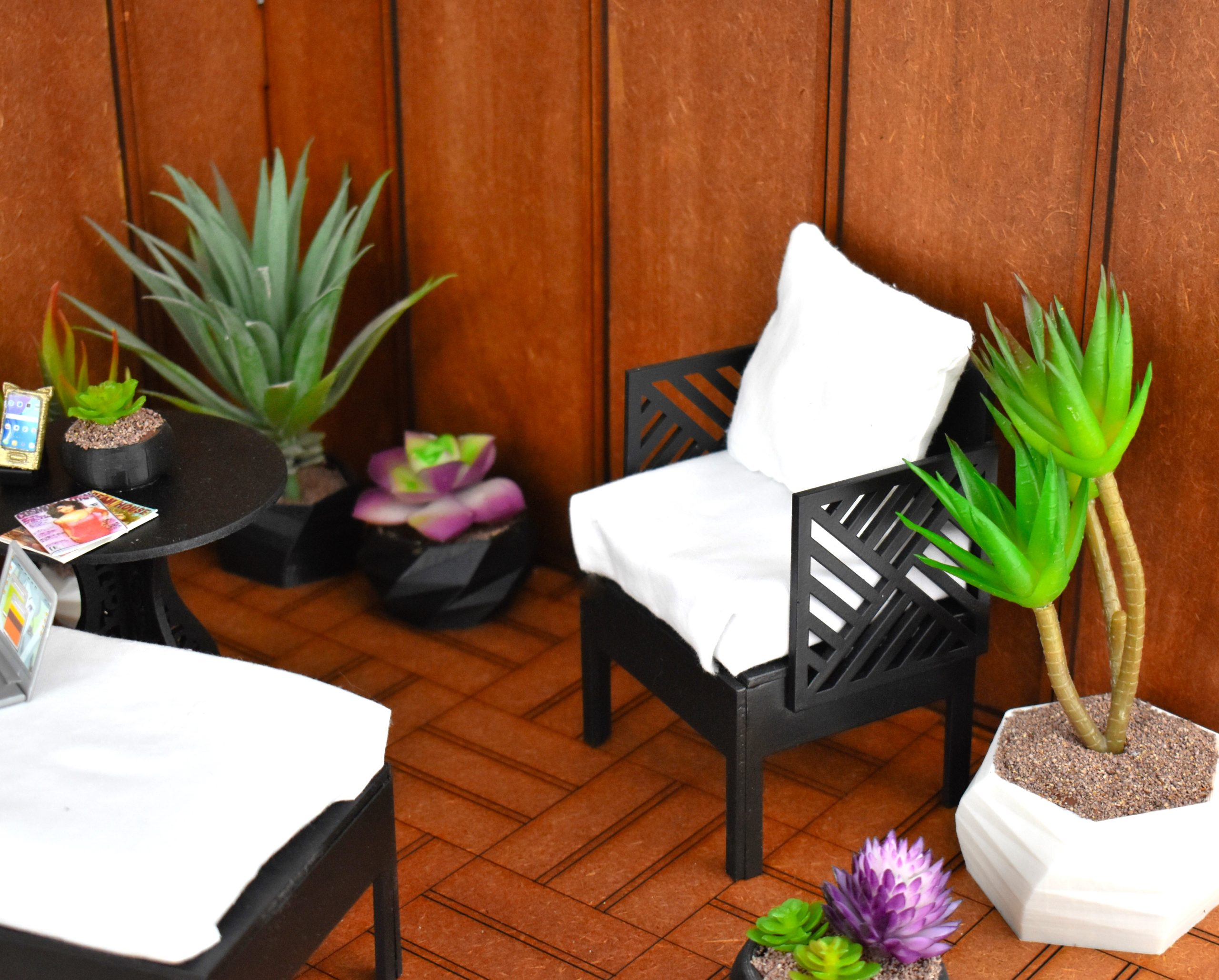 Cette terrasse extérieure miniature au 1/6 est idéale pour créer des mises en scène estivales, modernes ou détente pour vos dolls telles que Barbie, Pullip, Poppy Parker et modèles équivalents.